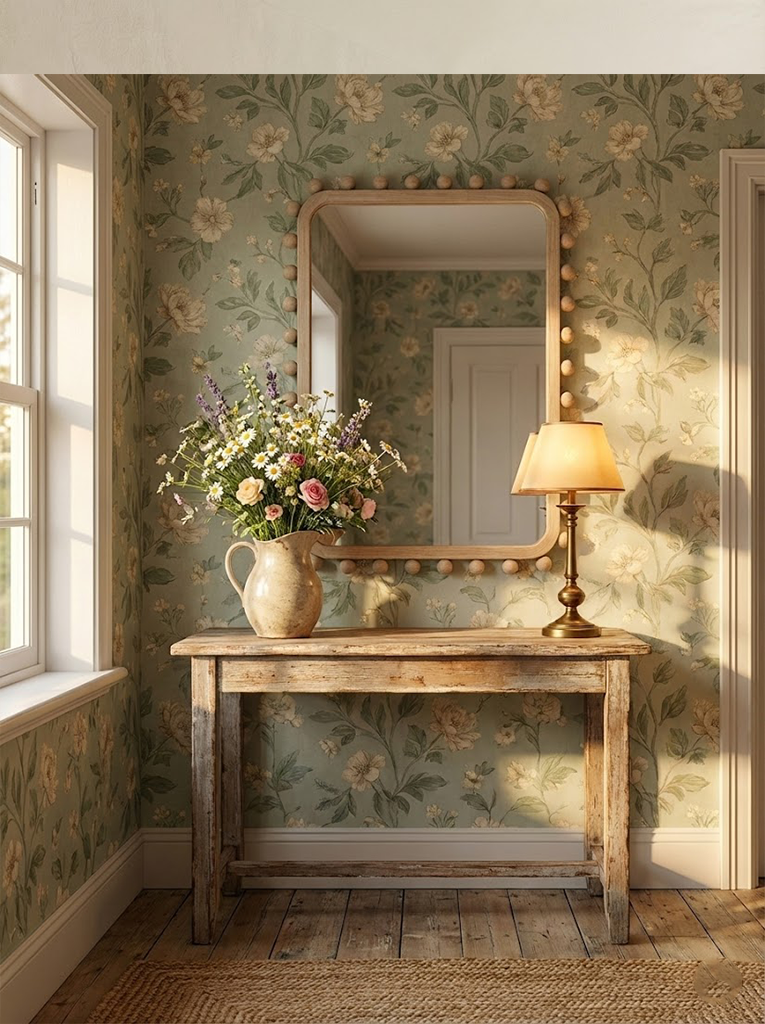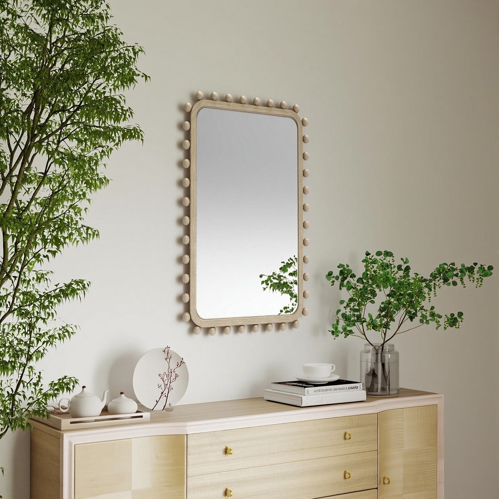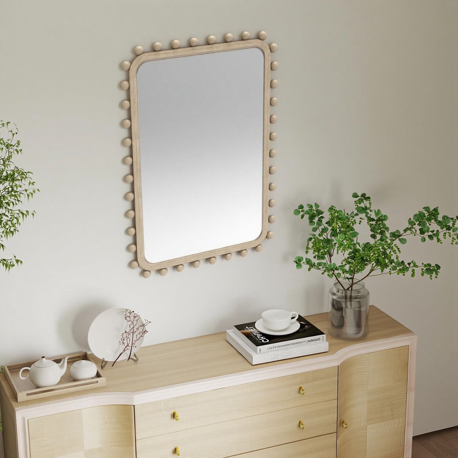 Soild wood frame mirror with wood beads