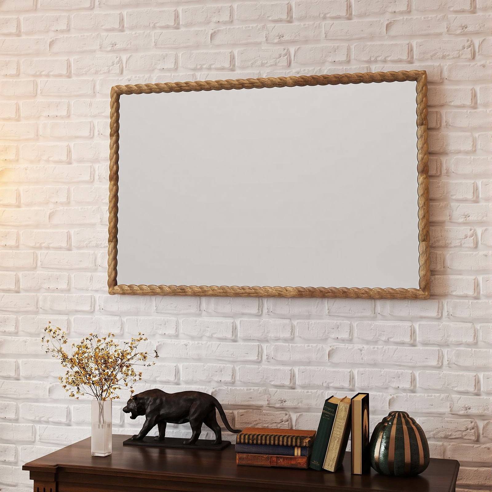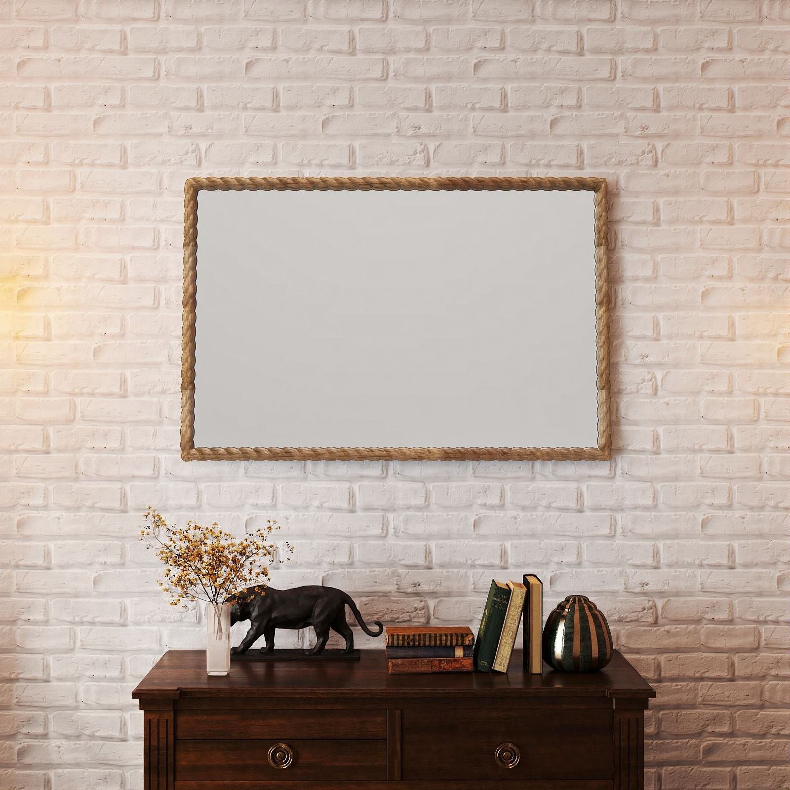 Solid wood rectangle frame mirror with rope style